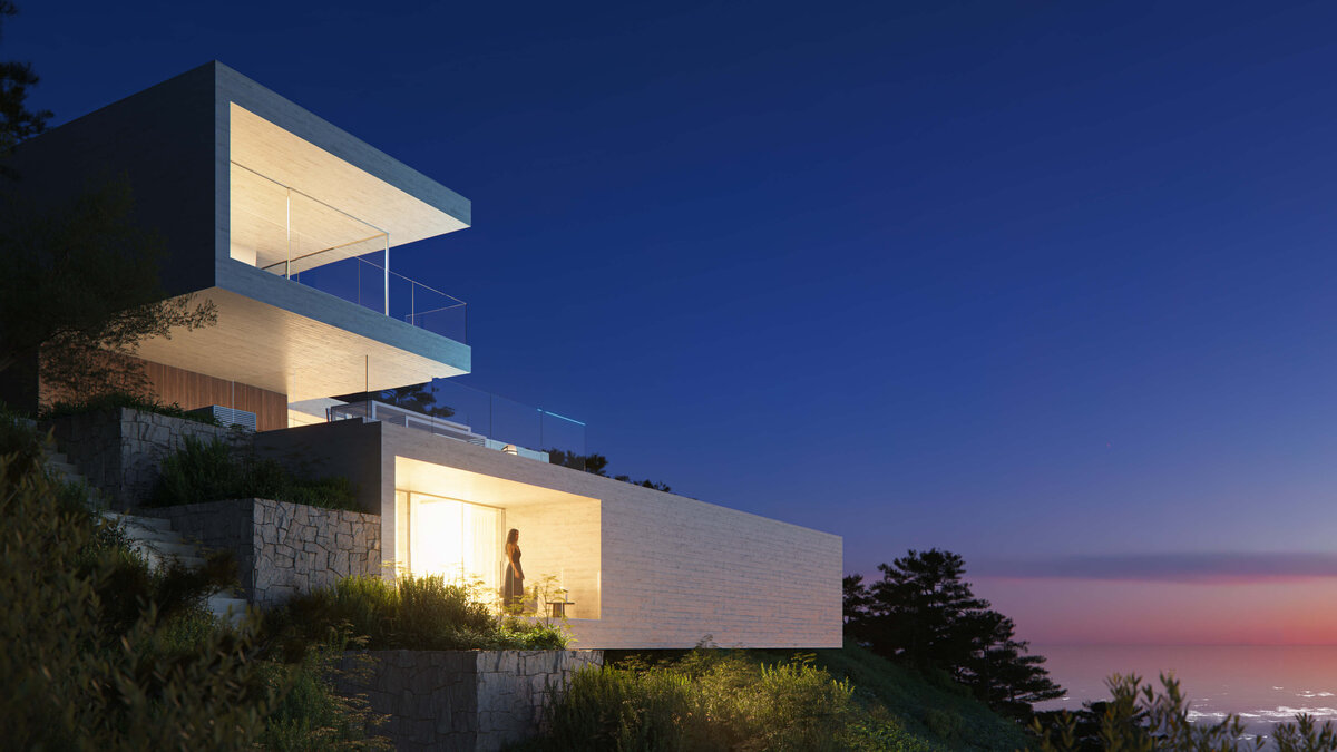 This contemporary villa offers panoramic views of the Mediterranean and the iconic Rock of Ifach. The main floor boasts a bright open-plan living area with a designer kitchen and direct access to the terrace and infinity pool. Upstairs, two elegant en-suite bedrooms open onto a private terrace, while the lower levels feature two more en-suite bedrooms, a gym, wine cellar, laundry, and a garage for four cars. Equipped with ducted air conditioning, central heating, smart entry, and modern security, this home perfectly combines luxury and Mediterranean living.